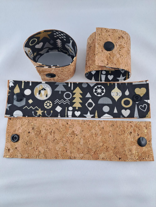 Confectionnés à la main avec des chutes de tissu en coton recyclé (motifs festifs) et de liège de qualité, ils allient originalité, authenticité et durabilité. Les chutes étant revalorisées au maximum, l’association de couleurs est pensée avec une note très joyeuse 🙂 Les points d’arrêts sont fixés à l’aide d’une pression Kam.