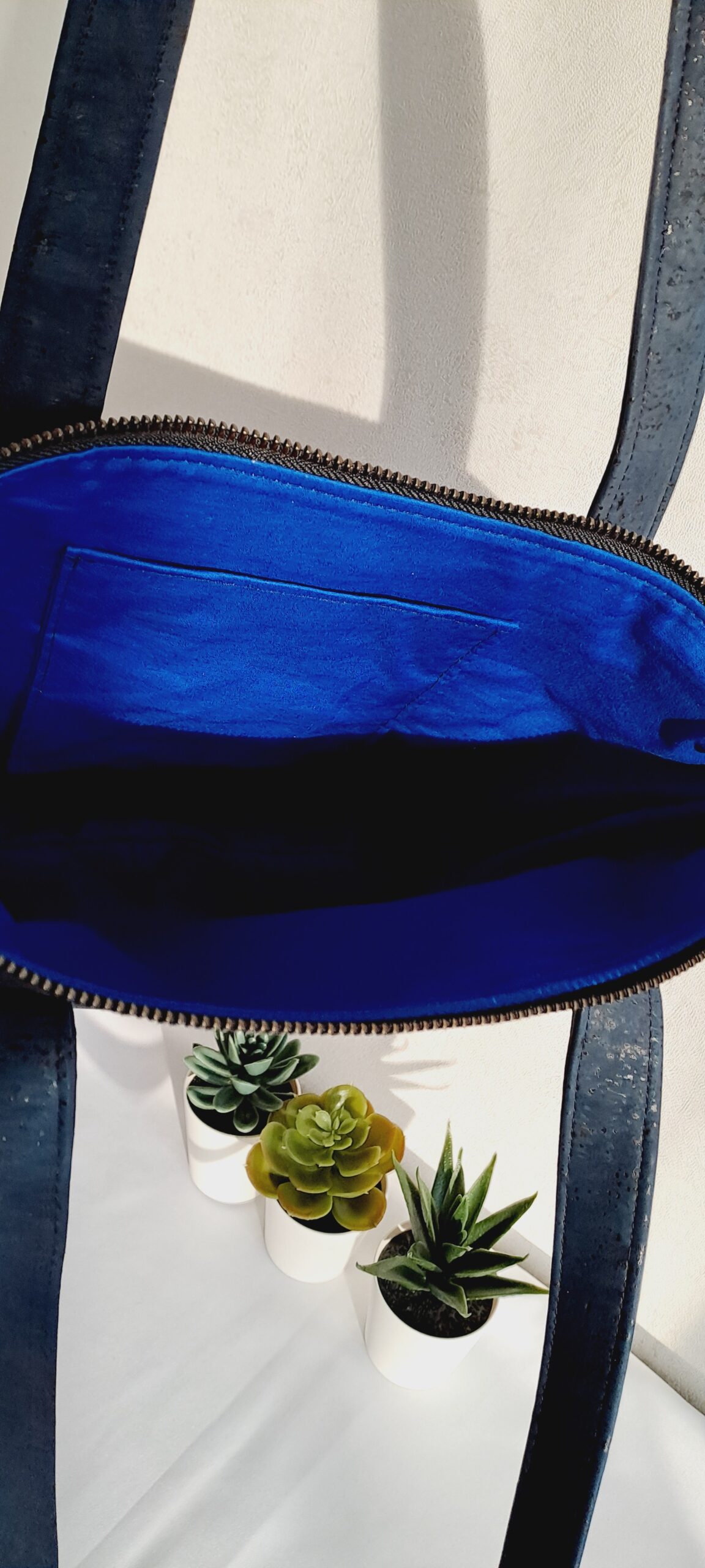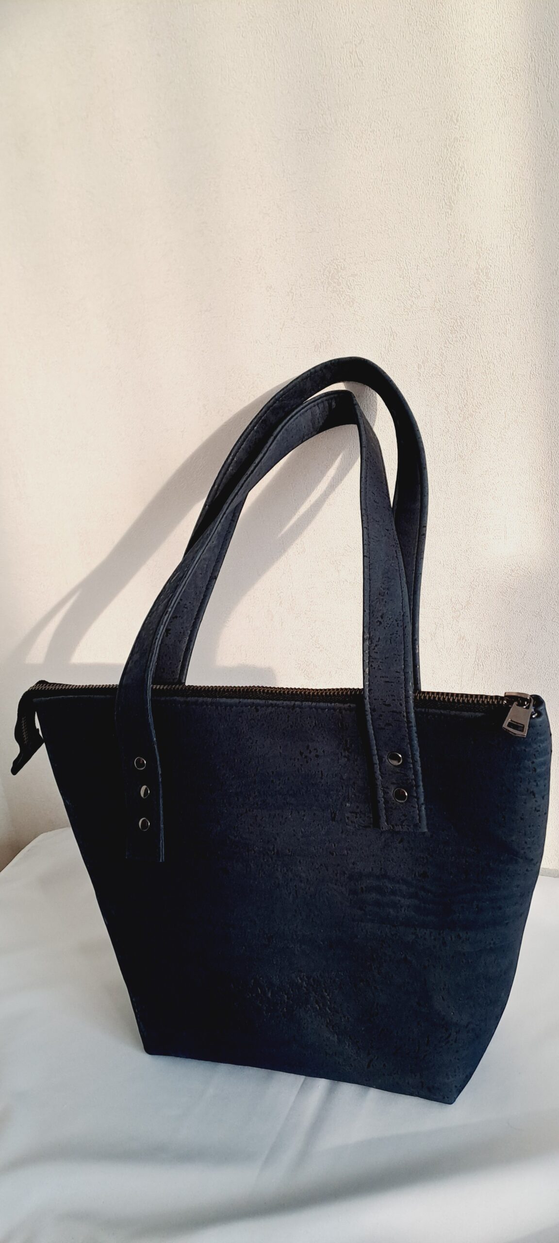 Chaque pièce que je crée est façonnée à partir de liège naturel issu du Portugal. Ce matériau exceptionnel provient de l’écorce du chêne-liège, dont chaque fragment est unique : nervures, aspérités, texture, teinte… aucun morceau ne se ressemble. Même si deux modèles sont conçus avec le même tissu de liège, les variations naturelles de l’écorce rendent chaque création fondamentalement différente.